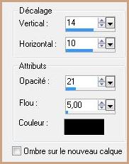 13 - Effets/Effets 3D/Ombre Portée : 14/10/21/5/couleur #000000