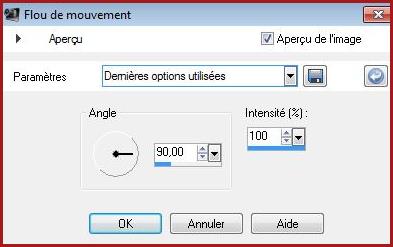 **Réglages/Flou/Flou de mouvement réglages suivants :