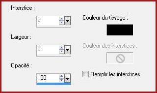 réglages suivants :
