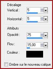 13 - Effets/Effets 3D/Ombre Portée : 5/5/75/15/couleur #000000