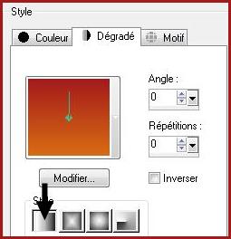 14 - Couches/Nouveau calque **Couches/Arranger/Déplacer vers le bas Remplir de dégradé linéaire premier-plan couleur #d96b15 et en arrière-plan la couleur #a31b1b