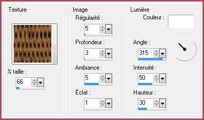 8 - Effets/Effets de Textures/Texture wood065a_small réglages suivants: