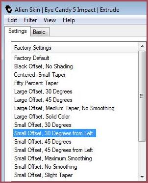 10 - Effets/Alien Skin Eye Candy 5: Impact / Extrude réglages suivants: