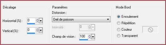 14 - Effets/Effets de Déformation/Distorsion de l'objectif réglages suivants: