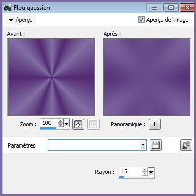 3 - Réglages/Flou/Flou gaussien réglages suivants :