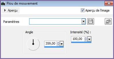 7 - Réglages/Flou/Flou de mouvement réglages suivants :