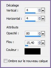 13 - Effets/Effets 3D/Ombre Portée : 4/4/80/15,40/couleur #000000