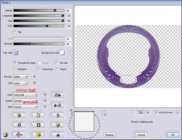 14 - Couches/Dupliquer Image/Redimensionner à 80%/décocher " Redimensionner tous les calques" **Effets/Flaming Pear/Flexify 2/réglages suivants :