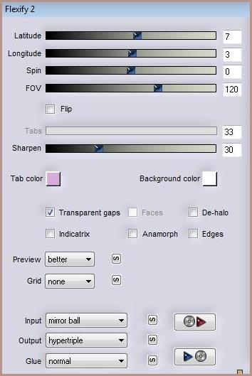 **Sur le calque dupliqué Effets/Flaming Pear Flexify 2/ réglages suivants :