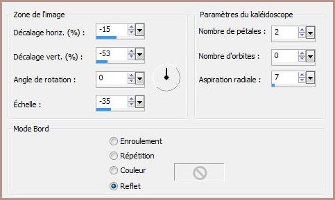 8 - Couches/Dupliquer **Effets/Effets de Réflexion/kaléidoscope réglages suivants :