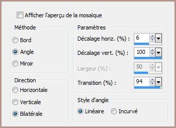 11 - Effets/Effets d'image/Mosaïque sans jointure réglages suivants :