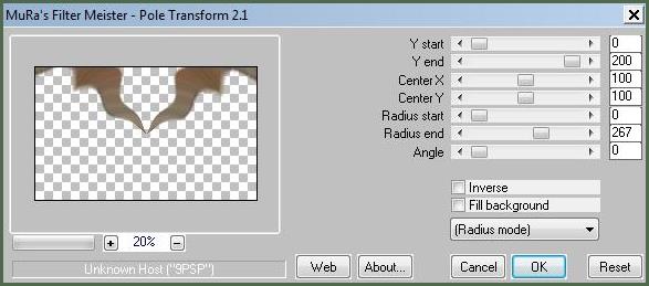 14 - Couches/Dupliquer Effets/Mura's Filter Meister/Pole Transform 2,1 réglages suivants :