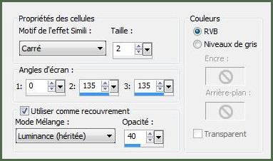 18 - Effets/Pentacom/Color Dot réglages suivants :