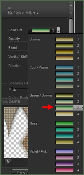 1 - Placer en avant-plan la couleur #6e906d et en arrière-plan la couleur # 8e664d