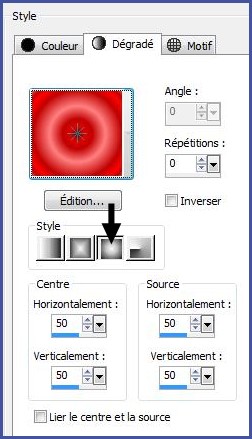 1 - Placer en avant-plan le dégrade crislipstick.jgd Configurer en dégradé halo/Répétition : 0