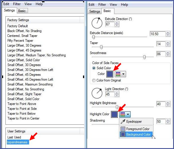 Preset Extrude topandreamaia.f1s ( à placer dans le dossier Extrude su filtre Eye Candy 5 Impact)