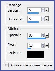 9 - Effets/Effets 3D/Ombre Portée : 5/5/85/13/couleur #000000