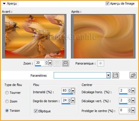 4 - Réglages/Flou/Flou radial réglages suivants :