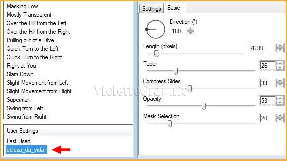 10 - Effets/Eye Candy 5 Impact/Motion Trail Appliquer le preset beleza_da_vida.f1s OK