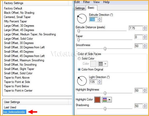 11 - Effets/Eye Candy 5 Impact/Extrude Appliquer le preset top_beleza_da_vida.f1s