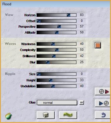 18 - Sur les calques 1 et 2 Effets/ Flaming Pear / Flood réglages suivants :