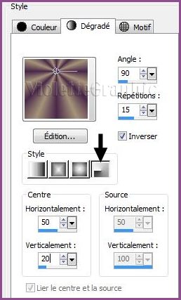 radial/ angle: 90°/Répétitions :15/Inverser coché