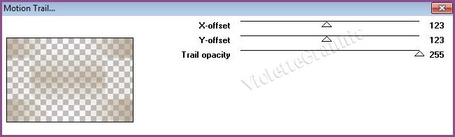 9 - Effets/Toadies/ Motion Trail réglages suivants :
