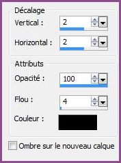 10 - Effets/Effets 3D/Ombre Portée : 2/2/100/4/couleur #000000