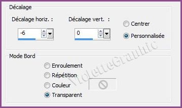 **Effets/Effets d'image/Décalage réglages suivants :