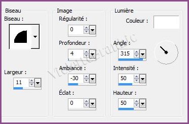 17 - Effets/Effets 3D/Biseautage Intérieur réglages suivants :