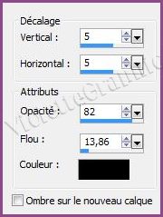 ** Effets/Effets 3D/Ombre Portée réglages suivants :