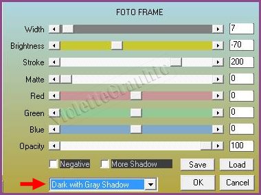 25 - Effets/ AAA Frame/Foto Frame réglages suivants :