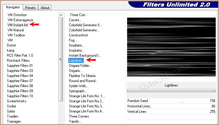 5 - Calques/Nouveau calque Remplir de couleur #dab19c **Effets/VM Instant /Art Lightlines réglages suivants :