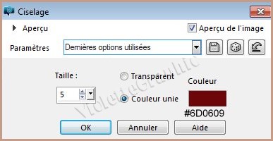 8 - Effets /Effets 3D/ciselage réglages suivants :