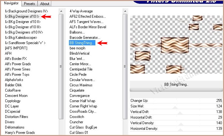 10 - Effets/ Bkg Designers sf 101/BB String Thing réglages suivants :