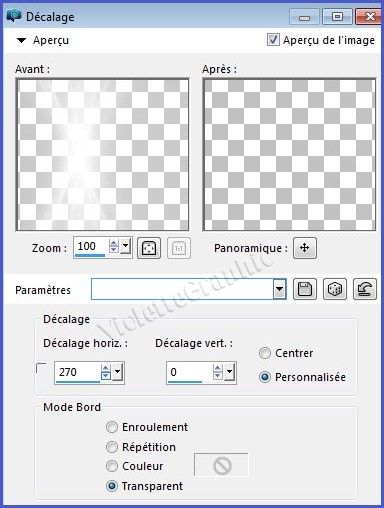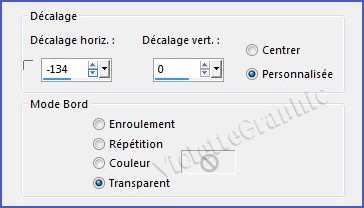 10 - Activer le tube TubeNaraPamplona 1458.psp Image/Redimensionner à 85% /décocher " Redimensionner tous les calques"Edition/Copier/Edition/Coller comme nouveau calque ** Effets/Effets d'image/Décalage réglages suivants :