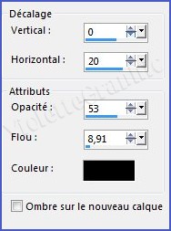 11 - Effets/Effets 3D/Ombre Portée : 0/20/53/8,91/couleur #000000