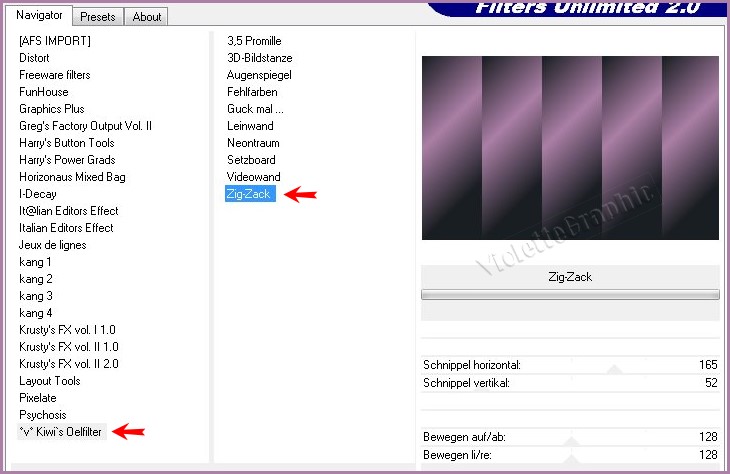3 -Effets/Filtre Kiwi/Zig Zag réglages