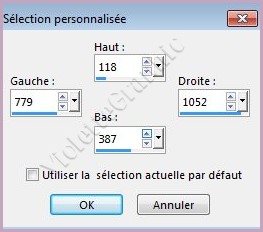 **Activer l'outil sélecteur placer ces réglages X: 528