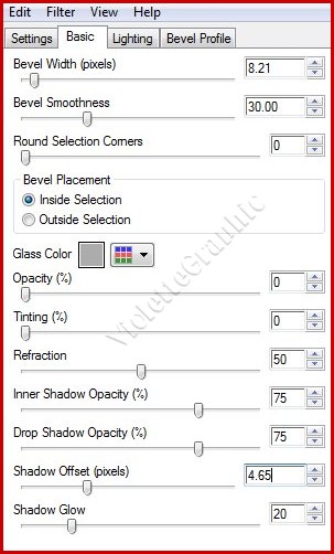 Effets/Alien Skin Eye Candy 5 /Glass/clear réglages suivants:
