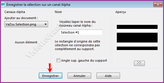 une sélection/Enregistrer sur un canal Alpha