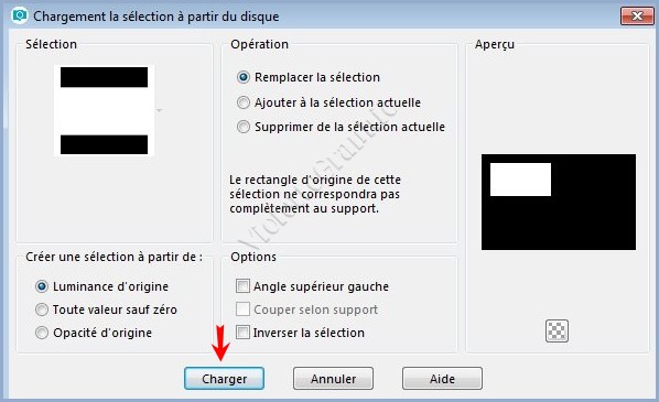Sélection/Charger/Enregistrer une sélection/charger à