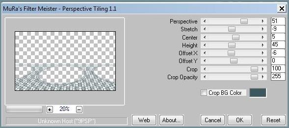 9 - Effets/Mura's Meister/Perspective Tiling réglages suivants :