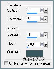 ** Effets/Effets 3D/Ombre Portée : 2/2/50/8/couleur #000000