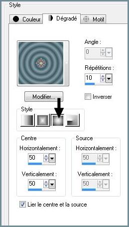 11 - Dans la Palette de Style Configurer un dégradé halo angle: 0°/Répétitions : 10