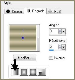 2 - Placer en avant-plan la couleur #d5caab et en arrière-plan la couleur #828060 Dans la Palette de Style Configurer un dégradé linéaire angle: 0°/Répétitions : 5