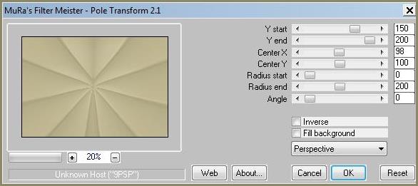 8 - Effets/Muras Filter Meister /Pole Transform réglages suivants :