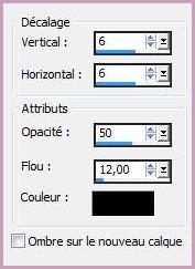 **Effets/Effets 3D/Ombre Portée : 6/6/50/12/couleur #000000