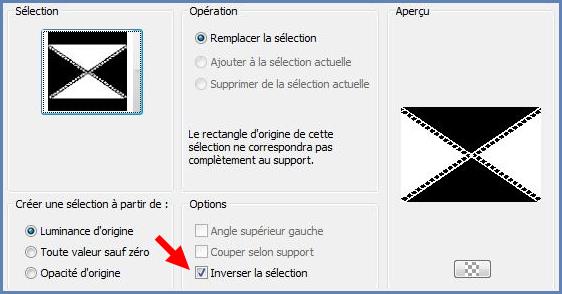 10 - Sélection/Inverser Remplir les carrés de couleur foncée Note de la traductrice: sélectionner les triangles supérieur et inférieur( tolérance : 0 )
