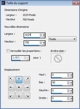 12 - Image/Taille du support réglages suivants :